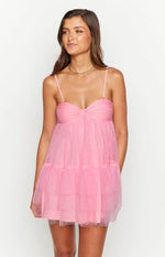 This beautiful pink mini dress is dreamy! Be the brightest at your party this summer. Its frilly detailing will pair perfectly with pink heels or pumps, while the knot front detailing perfectly pairs with cute hair bows.