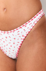 Our Bianca Red Floral Gingham Bikini Bottoms are perfect for celebrating in style this summer! The playful floral print and gingham trim create a fun, feminine look. Pair them with the matching bikini top for a coordinated beach day outfit, or mix and match with a solid colour top for a fun twist!