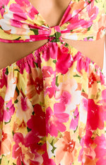 Yellow Floral Cut-Out Mini Dress