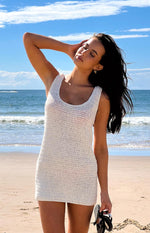 Step into effortless summer style with our Annalee Crochet Mini Dress, perfect for your next beach getaway or festival adventure. This playful mini dress features a comfortable crochet knit with stretch and a flattering scoop neck, designed for carefree styling. Wear it over your favourite swimwear for an elevated beach look, or layer it with a slip and boots for a festival-ready ensemble!