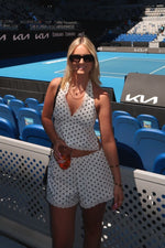 Radiate sweetness in the Arnie White Polka Dot Halter Neck Top, perfect for your next daytime event. This feminine piece showcases a charming polka dot print, delicate lace trim, and a daring backless design secured with ties. Complete the look with a denim mini skirt and slides for a picnic-ready ensemble.