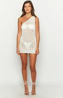 - The crochet mini dress of your dreams! Perfect for your next summer getaway, wear on a dinner date or a trip to the beach. So cute paired with some sandals, gold jewellery, and a claw clip in the hair for an effortless summer look.