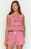The Baxter Red Gingham Top is a must have for your summer wardrobe! Perfect for a picnic in the park or a casual summer day out! Style with a simple pair of denim shorts and black sandals for a relaxed summer outfit. Or pair with the matching Baxter Red Gingham Shorts and gold jewellery for a cute matching look!