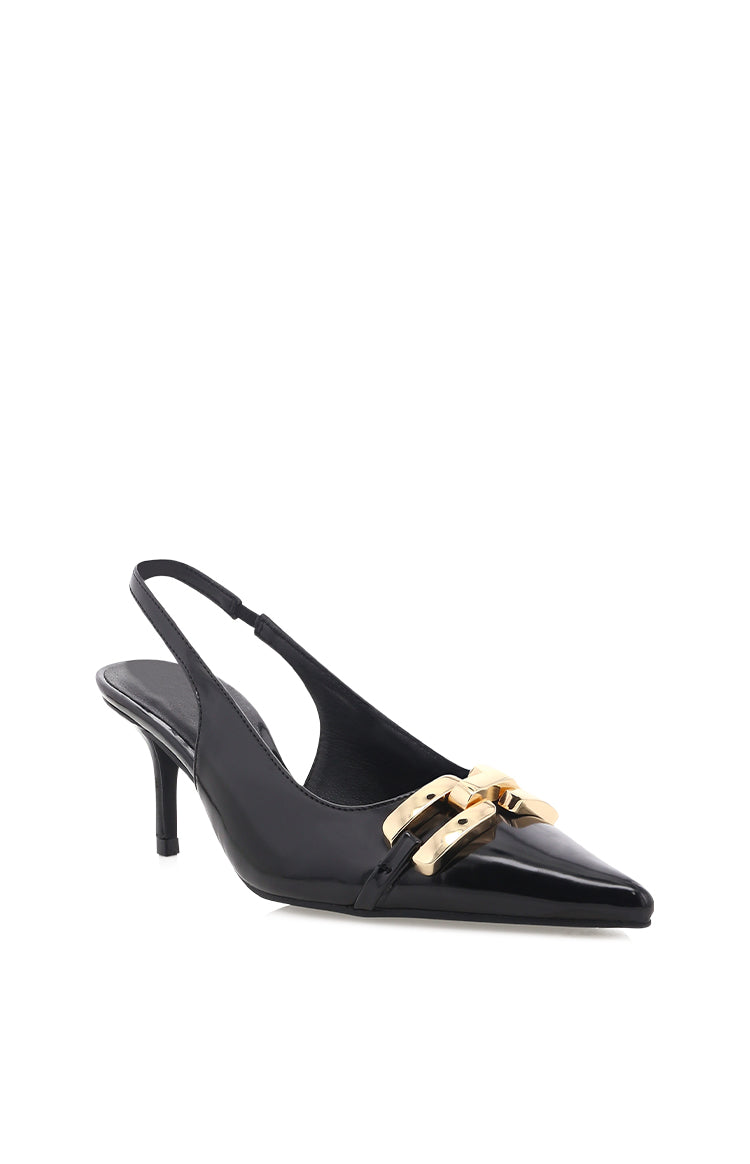Designed as a chic heel, the Dorothea Black Heels by Billini is the ideal choice for those seeking a stylish and classy footwear option. Not only do these elegant stilettos feature a classic closed pointed toe and elastic slingback strap, they also offer added support with a memory foam padded footbed, allowing you to enjoy your day or night out with more comfort! For the day, pair this look with a matching shoulder bag and tailored pants, and then change into an elegant maxi dress for a seamless transition into the night time!
