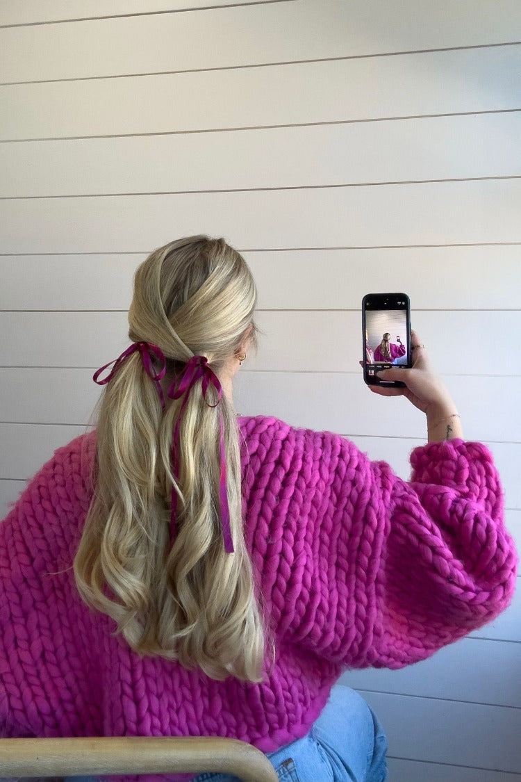 Getting your winter wardrobe ready is a MUST! This rich pink knit cardigan is the perfect piece to throw on when you're on the go. Pair the knit with a simple basic tank and denim bottoms. Make your outfit pop with the most adorable ballet flats!