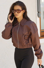 Bobbi Chocolate Collar Bomber Jacket