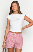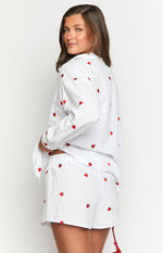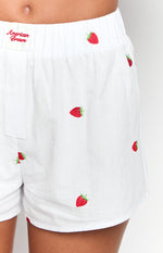 Embrace a playful and sweet vibe in our Brad White Strawberry Embroidered Boxer Shorts! The adorable strawberry design and comfortable pull-on style make them a fun choice for summer days. Style them with a simple tank top for a cute and casual look!