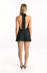 Add a touch of playful charm to your wardrobe with our Bryan Black Polka Dot Mini Dress, the perfect choice for your next date night or cocktail party! This stunning dress features a high scarf neckline with an adjustable tie, balanced by a daringly low backless design and a flirty, flowy skirt. Complete the look with your favourite heels and a mini bag for a fun and sophisticated finish.