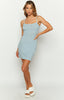 - Our daisy blue mini dress is the perfect dress for a girls brunch or Sunday markets. Designed with lots of stretch and light weight material, it's ideal for warmer months. Style with white platform sandals, gold jewellery and a shoulder bag to complete the look - casual, comfy and chic!