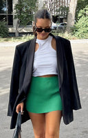 - Green is here to stay and so are we with this stunning Green Knit Tank! Obviously paired perfectly with the Dominica Green Rib Mini Skirt - this outfit is not one to sleep on! Finish this look with black strappy heels and fine accessories!