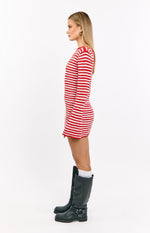 Elmer Red Stripe Long Sleeve Knit Mini Dress