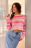 - Spice up your sweater weather wardrobe with this brightly stripped crocheted jumper. Featuring an open weave and slightly cropped length, we love wearing ours over a simple tank top with a midi skirt. Accessorise with sunnies and a tote bag for a casual vibe!
