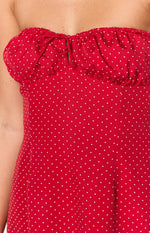 Red Polka Dot Strapless Tie-Bust Mini Dress