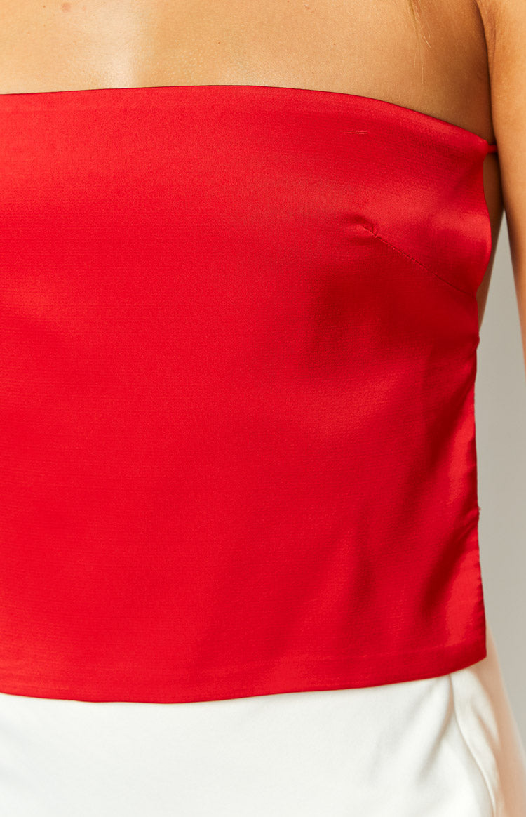 Ibiza Red Satin Strapless Top