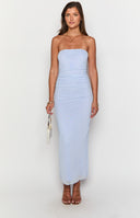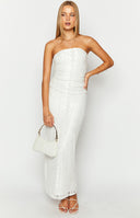 Red Mesh Strapless Maxi Dress