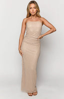 Slay the scene in our Imogen Red Maxi Dress, designed to hug your curves and show off your figure! The sleek mesh fabric adds a luxe touch, making it perfect for nights out or special occasions. Elevate your style with white heels and a matching bag and turn heads with this elegant and confident dress!