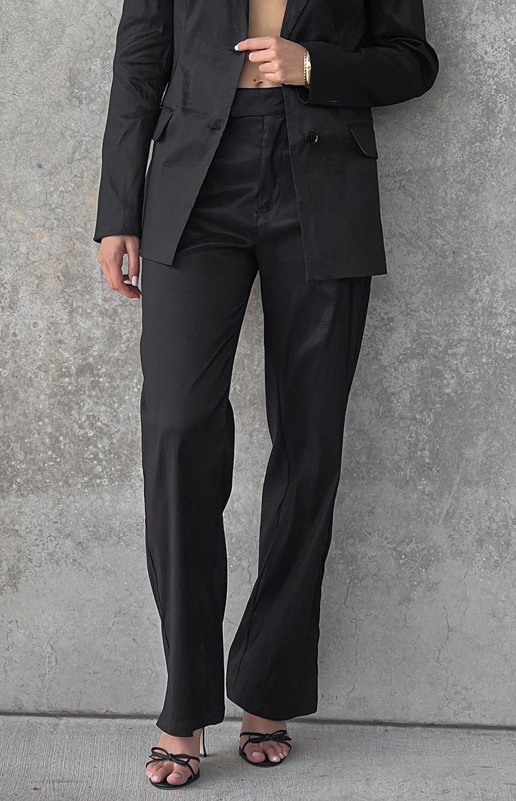 How to style: Create the ultimate chic look with the Jaden Black Pants! Style with the matching Baker Black Blazer for the perfect two-piece set look.This fit is so on trend - definitely a wardrobe must have!