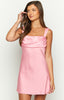 - Look pretty in pink in our stunning Lamira mini dress! You will absolutely adore the open back with an asymmetric tie and fabrication which sits elegantly and hugs your curves in all the right places. We love this dress paired with nude heels and a white shoulder bag for a fun and flirty cocktail look.
