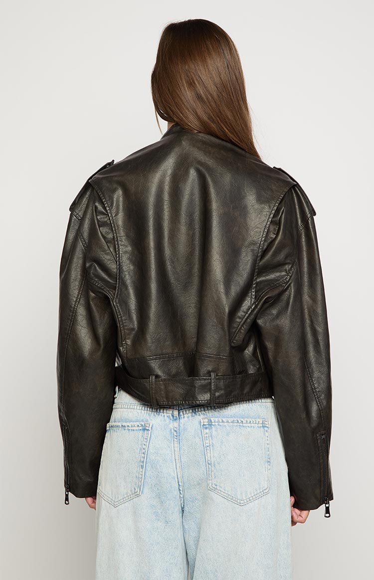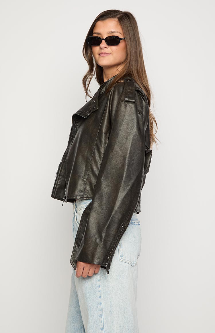 The Lioness Onyx Driftwood Vegan Leather Bomber Jacket