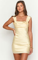 Our Macayle Yellow Satin Mini Dress is an elegant, timeless piece with a chic square neckline and lace-up back detail for a customised fit. The lightweight satin fabric adds a luxurious touch, making it perfect for a cocktail evening or birthday celebration. Pair with minimal gold jewellery and a sleek clutch for a polished, sophisticated look!