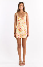 Radiate summer romance in our Marbelle Yellow Bloom Mini Dress, perfect for garden parties and warm-weather getaways. This enchanting dress is defined by its delicate floral strap detailing, complete with a classic sweetheart neckline and a flowing bias-cut skirt. Let the details shine by pairing it with simple nude heels for a beautiful and unique homecoming look.