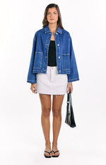 Mixie Mid Wash Denim Contrast Stitch Denim Jacket