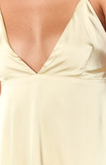 Yellow Satin Lace-Up Maxi Dress