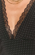 Our Oblivion Black Polka Dot Mini Dress blends playful charm with a touch of Western-inspired edge - perfect for festivals or nights out! Featuring a flattering A-line silhouette, lace-trimmed V-neckline, and a timeless polka dot print, it brings a flirty feel to any occasion. Pair it with cowboy boots and layered silver jewellery for an effortlessly cool, after-dark look!
