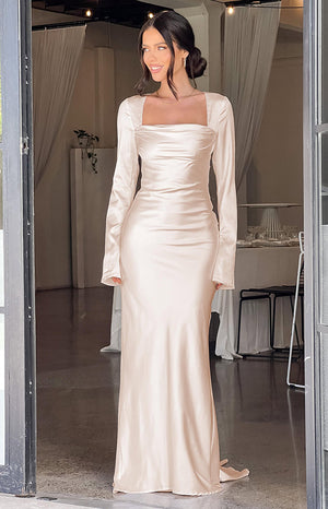 Embrace minimalist luxury in our Orlando Cream Maxi Dress! The stretch lace fabric on the sleeves and bust and long sleeves are effortlessly elegant. With a pair of heels and your go-to gold jewellery for a gorgeous formal look!