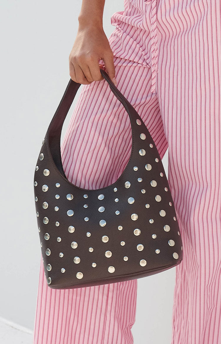 Peta & Jain Jenni Chocolate Pebbled Studded PU Bag