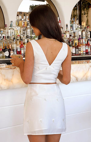 Scotlyn White Embellished Satin Mini Skirt