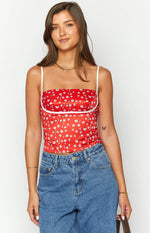 Tamra Red Floral Low Back Top