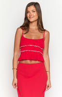 Our Wiatt top is a perfect addition to your summer wardrobe rotation! Featuring adorable white stitching that pops out against the bold red, this top is perfect for all of your Christmas festivities! Pair this top with our the matching Wiatt maxi skirt for a cute coordinated look, or opt for a denim mini skirt for a more casual vibe.