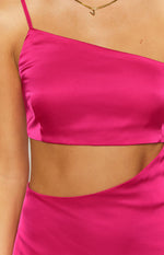 Be the next IT girl in our pink mini! Perfect for sunset drinks, style with nude heels and chunky gold jewellery. We are loving the unique asymetrical cut out detailing!