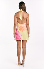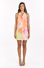 Yellow Hibiscus Floral Print Cowl Mini Dress